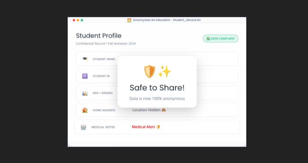 Hospitals and healthcare providers handle sensitive patient data that needs to be shared for research or analysis, but they must comply with regulations like HIPAA or GDPR. Our anonymization tool can remove or mask personally identifiable information (PII) from patient records, allowing safe data sharing and analysis.