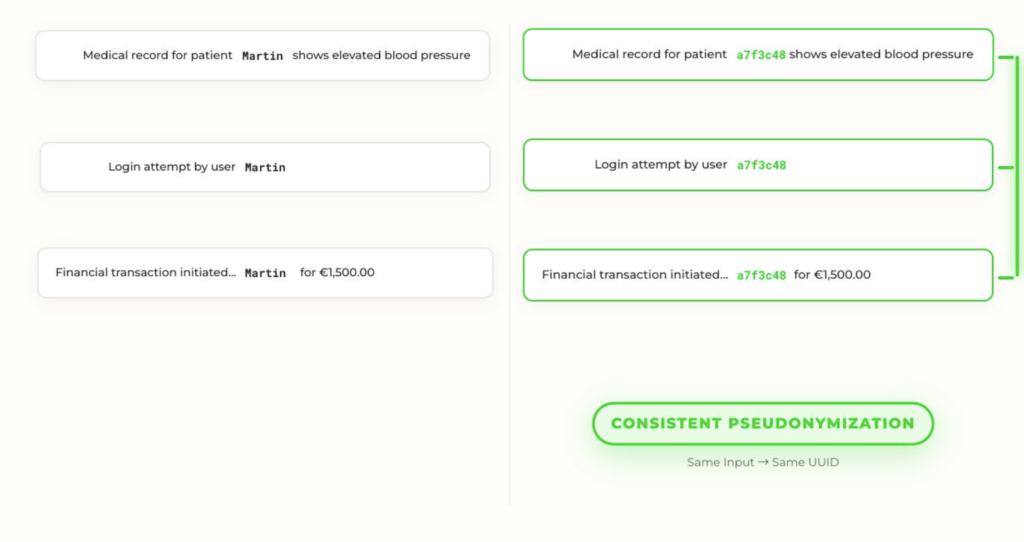 Anonymize sensitive fields in structured JSON content while maintaining data utility. This service enables privacy-compliant analytics, safe data exchange, and AI training—without exposing personal information.