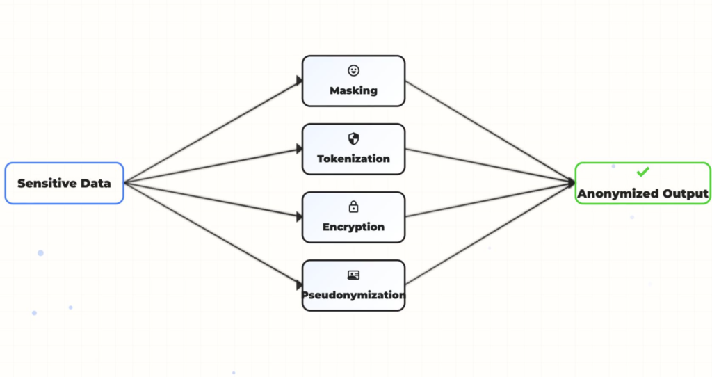We offer multiple anonymization methods including replace, redact, mask, hash, and encrypt. Additionally, we provide consistent pseudonymization methods such as random number generation, counters, and cryptographic hashing.