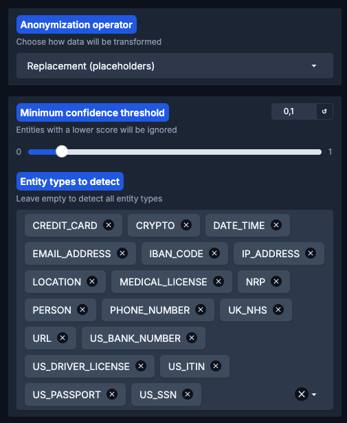 Identify and anonymize various types of PII including names, email addresses, phone numbers, and more. This broad support helps in complying with data protection regulations across different data types.