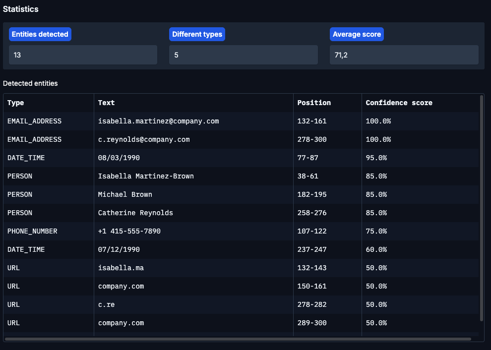Easily process both plain text and structured JSON data to identify and anonymize personally identifiable information (PII). This feature ensures versatile data handling, making it suitable for various data formats and use cases.